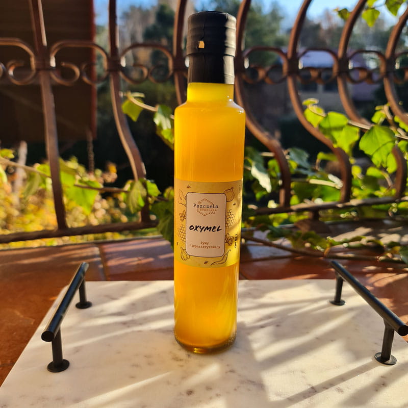 Ten tradycyjny napój, stworzony z najwyższej jakości miodu wielokwiatowego i octów jabłkowego, wiśniowego, jeżynowego to prawdziwa skarbnica zdrowia. Nazwa pochodzi z języka greckiego i oznacza „Oxy”- ocet i „mel/méli” – miód.
