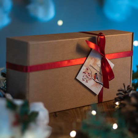 Całość udekorowana jest wstążką i zawieszką o unikalnej oprawie, na odwrocie którego można napisać życzenia:)