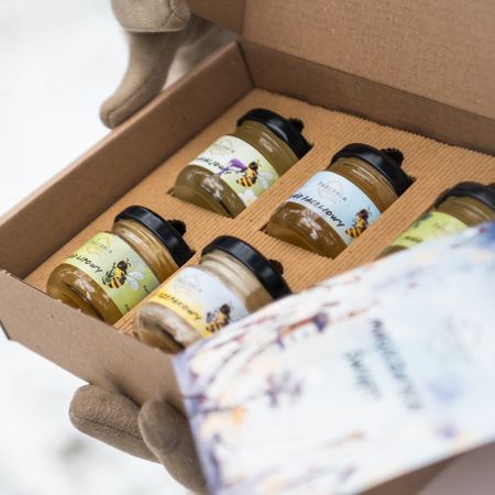 Różnorodność smaków: Zestaw zawiera sześć słoiczków o zróżnicowanych smakach, które zaskoczą i ucieszą podniebienie. Od delikatnych kwiatów po intensywną gęstość – każdy miód to mała przygoda smakowa. Zestaw składa się z sześciu losowo wybranych miodków gdzie minimum cztery to miody tradycyjne a pozostałe dwa mogą być miodami smakowymi lub słoiczkiem pyłku.